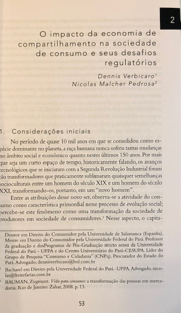 Nesse sentido, o Sócio Dennis Verbicaro participa de obra nacional, intitulada “Economia compartilhada: tópicos fundamentais”, com o artigo o “O impacto da economia de compartilhamento na sociedade de consumo e seus desafios regulatórios”.